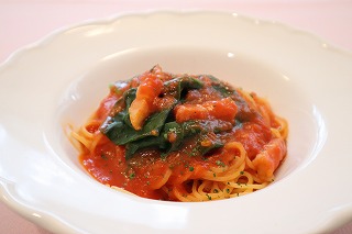 ほうれん草とベーコンのトマトソース(自家製生メン)